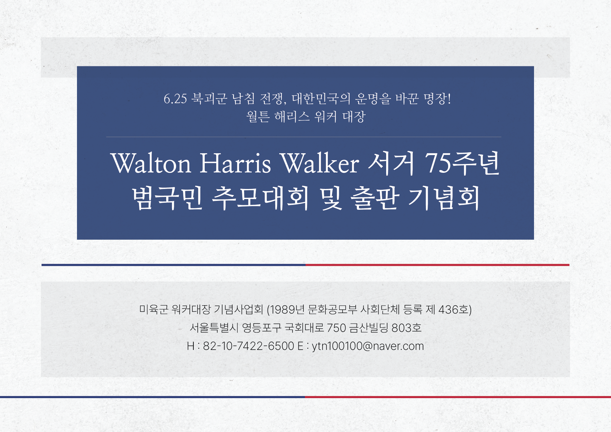 워커대장군 "서거" 제75주년 기념 범국민 추모밎 출판기념회